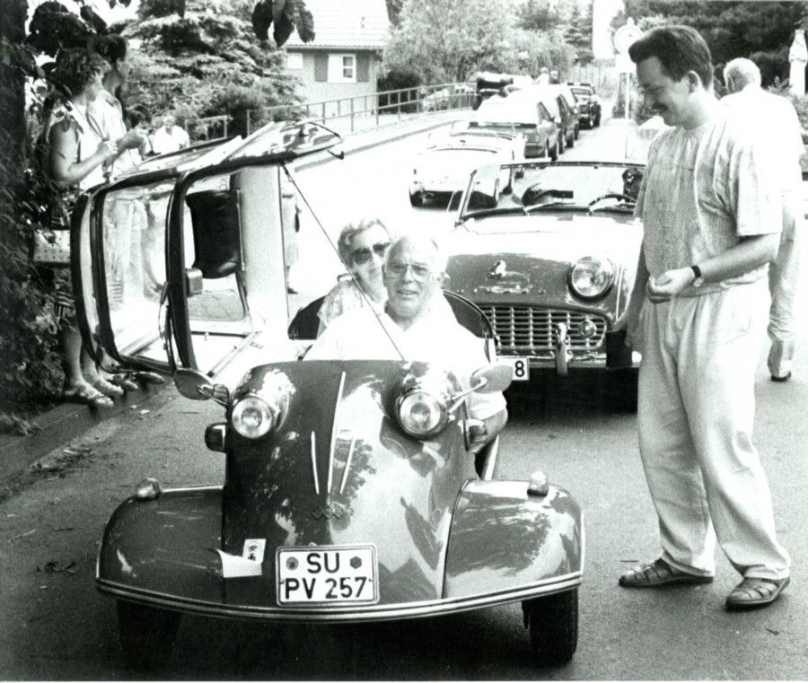 Heute noch nennt Binz seinen Messerschmitt KR 200 liebevoll „KaRo“. KR oder KaRo war die Abkürzung für Kabinenroller. Auch damals war der KaRo unter den Kleinfahrzeugen schon ein merkwürdig Ding: Vorne zwei Räder wie ein Auto, ein Lenker wie ein Motorrad, Fahrer und Beifahrer saßen hintereinander, hinten war der KaRo gebaut wie ein Roller. Für die Behörden galt er als Auto. Den wetterfesten Abschluss nach oben besorgte eine Plexiglaskanzel, wie sie auch im Flugzeugbau verwendet wurde. Diese Kanzel sorgte dafür, dass der Volksmund die Fahrer dieser Fahrzeuge schon bald „Menschen in Aspik“ nannte und den Kabinenroller selbst „Schneewittchensarg“. Die Bezeichnung „Schneewittchensarg“ fand übrigens im Jahre 1971 erneut Verwendung für den verglasten Sportkombi Volvo P 1800 ES. Anfang 1959 hatte Horst Binz eine überaus unglückliche Begegnung mit einem Lastzug, bei der er selbst glücklicherweise nur relativ leicht verletzt wurde, der KR anschließend nur noch Schrott war und der LKW-Fahrer von einem anderen PKW-Fahrer gestoppt werden musste, denn der hatte von dem Unfall mit dem kleinen Fahrzeug überhaupt nichts bemerkt. „Nur gut“, so Binz heute, „dass niemand auf dem Rücksitz des "KaRo" saß! Für den hätte die Fahrt im Schneewittchensarg tragisch geendet“. Nach seiner Genesung stand die Überlegung zum Kauf eines neuen Autos an: Der VW Käfer, für den er noch keinen Führerschein hatte, kostete damals in der Standardausstattung mit Seilzugbremse 3.700,00 DM. Der „KaRo“ hatte dagegen einen Listenpreis von 2.395,00 DM, man saß trocken und windgeschützt wie im Auto, die Unterhaltskosten waren niedriger und insgesamt floss der Verkehr ja noch nicht so schnell wie heute. Transportaufgaben löste man ohnehin mit viel Improvisation. So wurde auch nicht sehr lange überlegt und der Kauf bei der Fa. Josef Sauer in Hennef-Geistingen noch mit Februar 1959 perfekt gemacht. Die Auslieferung des neuen Messerschmitt KR 200 de Luxe in zitronengelber Farbe erfolgte am 01.03.1959. Mit diesem Gefährt lernte er auch seine Freundin Marga kennen, die er schließlich 1961 heiratete. Selbstverständlich gingen die beiden mit dem „KaRo“ auf Hochzeitsreise: Ziel war diesmal der Gardasee und von dort aus ging es noch weiter gen Süden bis nach Neapel.