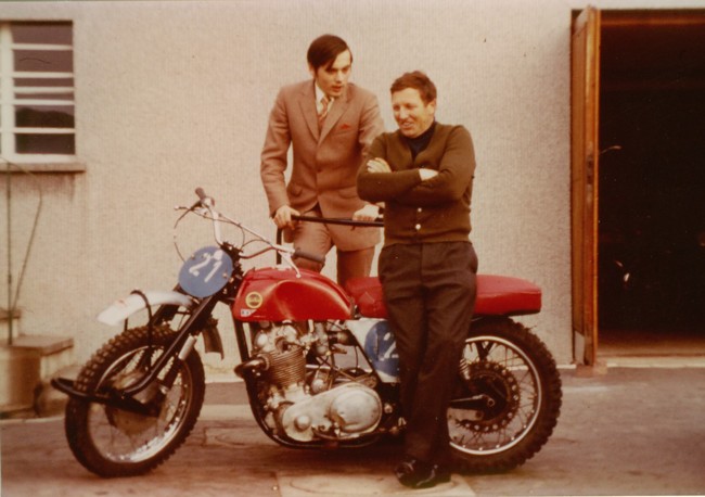 Motorradsport erleben konnte Netterscheid damals auch schon in seinem Heimatort Buschhoven quasi vor der Haustür, wo in den 1960er Jahren auf dem alten Buschhovener Sportplatz neben der B 56 – heute Reitanlage des Buschhovener Reitervereins - regelmäßig Motoball gespielt wurde. Zudem besuchte er schon früh zusammen mit seinem Vater die Moto-Cross-Rennen in der näheren Umgebung, wie etwa in Dom-Esch und in Satzfey. Glück hatte Walter Netterscheid, dass sein Vater ebenfalls Sinn fürs Motorrad hatte. Und dann gab es da in Buschhoven noch den Heinz Montenarh, der seit Ende der 1950er Jahre schon Moto-Cross mit einer Solomaschine fuhr. Der trug in den 1960er Jahren mit dazu bei, dass in Buschhoven ein Moto-Cross-Club gegründet wurde. Mitglieder darin waren unter anderen ein Hans Mans und Wolfgang von Kienzel. Durch letzteren war es möglich, Trainingsfahrten in der der Familie von Kienzel gehörenden Kiesgrube zu veranstalten, die zwischen der Kreuzung „An den vier Bänken“ und Miel lag, wo heute die Müllumladestation der RSAG zu finden ist. Im Buschhovener Motocross-Club war sozial eingestellt: So durften Lehrlinge – heute Auszubildende genannt - wegen ihres bekanntermaßen bescheidenen Einkommens beitragsfrei Mitglied werden. Diese Möglichkeit nahm Walter Netterscheid schon früh wahr und es entwickelte rasch eine freundschaftliche und fruchtbare Beziehung zu dem oben genannten Heinz Montenarh, der in Buschhoven im Rosenweg sein Haus hatte. |