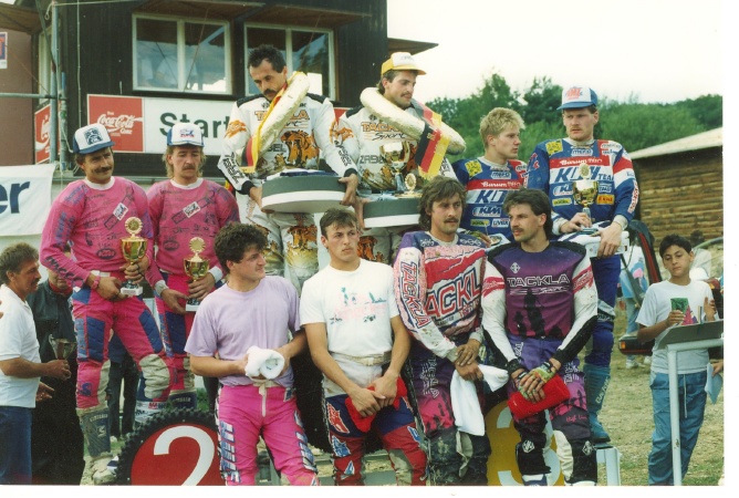 viele Freunde. „Lust, noch mal so richtig an einem Wettbewerb teilzunehmen, habe ich nach 1994 nicht mehr verspürt“, erzählte mir Walter Netterscheid. Aber nur so aus Lust an der Freude und ohne ernsthaften Wettbewerbsdruck hin und wieder noch mal zu fahren, das könne schon Spaß machen. Mit Hans Georg Peppinghaus „Peppi“ sei er aus diesem Grund 1995 noch mal in ein Gespann gestiegen und habe in Euenheim - mehr aus Spaß - an einem Rennen teilgenommen. Einmal habe er auch auch bei einem Oldtimer-Moto-Cross mitgemacht und mit einem Quad sei er auch schon ein Rennen gefahren. Das Kapitel aktiver Rennfahrer, so wie er es bis 1994 konsequent praktiziert habe, sei für ihn aber abgeschlossen. Heute fährt er immer wieder gerne noch zu dem einen oder anderen Moto-Cross-Rennen. „Gute Rennen mit schnellen Leuten“ schaut er sich gerne an. Versuch einer Bewertung Wenn man sich die Geschichte Walter Netterscheids betrachtet, dann fällt zunächst einmal auf, dass sein außerordentlicher Erfolg einzig und alleine aus seinem eigenen Antrieb erwachsen ist. Seine Eltern ließen es zwar zu, dass er schon mit 16 Jahren im Beiwagen eines Renngespannes mitfuhr, jedoch waren die Eltern nicht so ehrgeizig, dass sie ihrem Sohn schon im zarten Alter von 12 Jahren eine kleine Moto-Cross-Maschine kauften, für ihn ein strenges Trainingsprogramm erarbeiteten und dafür sorgten, dass er die körperliche Fitness und das Training erlangte, um in so jungen Jahren auch schon Rennveranstaltungen gewinnen zu können und so seine Karriere vorzubereiten. In der Geschichte des Moto-Cross-Sports gibt es hierzu viele ältere und noch mehr jüngere Beispiel genug. Finanziell musste er bis 1985 fast gänzlich aus den Mitteln schöpfen, die ihm mit seinem eigenen Einkommen als Heizungsbauer zur Verfügung standen. Den „Profi-Status“ erlangte er erst, nachdem er als Amateur bereits Vizeweltmeister geworden war. Im ersten Jahr seines Profistandes haderte er mit dem Fahrwerk, mit dem er nicht richtig zurecht kam. Seine Verletzung 1992 mit dem bis weit in 1993 andauernden Heilungsprozess ließ ihn diese Möglichkeiten des Profi-Status nicht vollends ausschöpfen. Dennoch sind 26 Jahre aktiver Moto-Cross-Sport schon mehr als ein viertel Jahrhundert. Auch wenn ihm der Titel des Weltmeisters verwehrt blieb, sind seine sportlichen Erfolge außerordentlich. Axel Koenigsbeck – ein Kenner der Gespannszene, wie sonst niemand – bezeichnete Netterscheid 1994 als den „erfolgreichsten Seitenwagen-Crosser aus der Gespannszene“ und als der „selbst im härtesten Fight besonnene und absolut faire Netterscheid ...“. Wenn man Erfolg nicht nur über die Platzierung definiert, sondern auch noch über Charakter und Fairness, dann steht Walter Netterscheid ganz groß da. Und wenn sein Club, der MSC-Euenheim, traditionell am 1. Mai eines jeden Jahres sein Moto-Cross veranstaltet – 2011 müsste es die 49. Veranstaltung dieses Clubs sein - dann nimmt Walter Netterscheid sich ggf. extra ein paar Tage Urlaub, um mit an der Strecke zu arbeiten und so für eine gelungene Rennveranstaltung zu sorgen. Hört, hört denke ich mir da, als er mir das erzählt: Da ist der sechsfache Deutsche Meister und Vizeweltmeister sich selbst nicht zu schade, Urlaubstage mit Schaufel, Spitzhacke und Hammer in Arbeit für seinen Club zu investieren. Noch eine Danksagung am Schluss Walter und seiner Frau Angelika lag sehr viel daran, dass ich in dieser Geschichte über ihn und sein Team auch deren Dank dafür zum Ausdruck bringen sollte. Das ist wohl typisch für die beiden. Wenn ich das hiermit tue, dann nicht ohne den Hinweis, dass mir dieser Aufsatz eine Ehre und Freude war, auch wenn ich annähernd 300 Stunden daran gearbeitet habe. Buschhoven, im Januar 2011 Hans Peter Schneider |