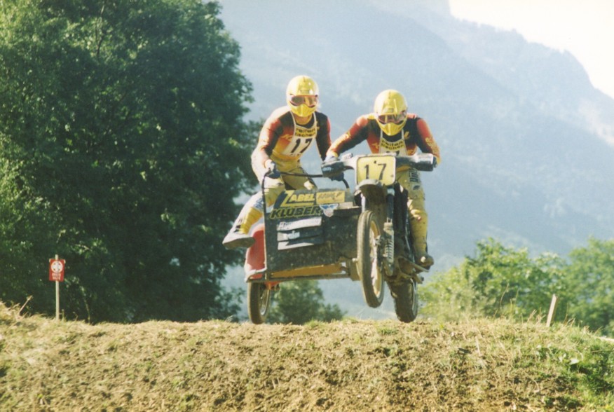 Netterscheid/Peppinghaus bei einer Flugeinlage im Rahmen eines internationalen Rennens