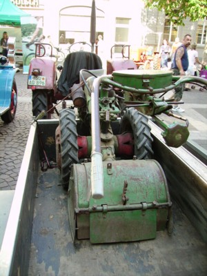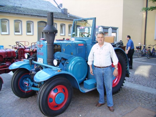 Kurzportrait Manfred Sardo Auch Manfred Sardo wuchs in der Vorgebirgslandwirtschaft auf, insbesondere in dem kleinen Unternehmen seiner Großeltern. Er selbst absolvierte mit bestem Erfolg eine Gärtnerausbildung und betreibt heute unter anderem ein Obst- und Gemüsegeschäft in Hürth-Fischenich. Kein Wunder also, dass Traktoren in seinem Leben auch beruflich noch eine Rolle spielen. Hierzu sind der rechts abgebildete Fahr und darüber hinaus auch noch ein Deutz D 30 S regelmäßig im produktiven Erwerbs-Einsatz. Allerdings geht seine Liebe zu alten Schleppern noch weiter, was ihm sogar schon - seinem jungen Alter zum Trotz - für die Eröffnung eines kleinen Schlepper-Museums gereichen könnte. Sein Eigen nennt er noch einen echten Lanz Bulldog D 9506 mit über 10 Litern Hubraum und 45 PS aus einem Zylinder sowie einen Kramer KLS 140. Klar, das auch er
