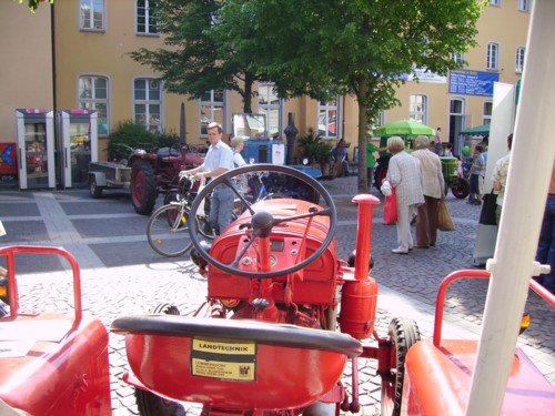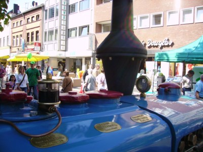 Die benachbarten Städte Brühl und Bornheim verstehen sich so gut, dass sie nun schon zum dritten Mal gemeinsam die Landwirte, die Gastronomie und Lebensmittelproduzenten der geminsamen Region im Rahmen eines Spargelfestes förderten. In diesem Jahr war Brühl wieder der Austragungsort. Bei sommerlichem Wetter eingangs der Fußgängerzone vor der malerischen Kulisse des alten Rathauses hatten sich die Aussteller, die obersten Repräsentanten der Stadt und sogar Abordnungen der Partnerstädte aufgebaut und boten den Passanten bei Kaffeehaus-Jazz – ausgezeichnet vorgetragen vom Saxofonensemble der Brühler Musikschule – eine kulinarische Kostprobe für die Sinne. Weil ja historische Schlepper gut ins Bild einer solchen Veranstaltung passen hatte auch in diesem Jahr unser Club wieder einige Freunde alter Schlepper gebeten, Ihre Schätzchen dort zu präsentieren. Natürlich werden wir uns auf dieser Seite insbesondere unseren Schlepperfreunden widmen. |