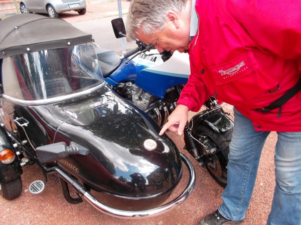 Ich selbst war nunmehr schon das vierte Mal in Fridjof Erpeldings Museum. Immer wieder neun kann ich mich für die vielen ausgestellten Rennmaschinen aus insgesamt sechs Jahrzehnten Rennsportgeschichte begeistern. Im Grunde gibt es dort so viel zu sehen, dass ein einstündiger Besuch im er zu knapp bemessen ist. Deshalb werde ich wohl noch oft dieses Museum besuchen müssen. Die meisten Teilnehmer nahmen sich auch die Zeit für einen Rundgang, während einige auf der sonnigen Gartenterrasse ihren Hunger bekämpfen mussten. Fridjof Erpelding sparte dabei den Museumsbesucher gegenüber nicht mit zusätzlichen Erläuterungen.