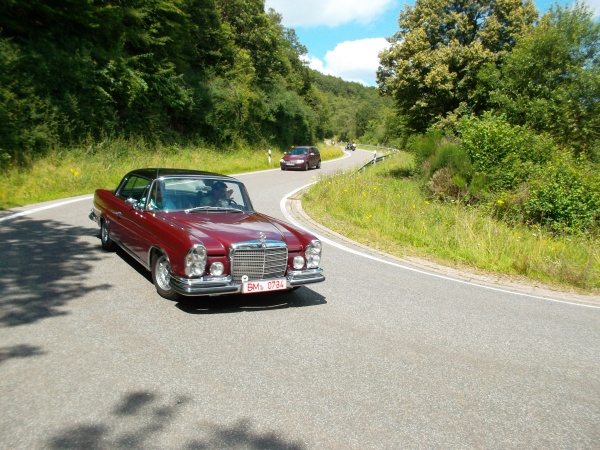 2012 Endlich, es war das erste Mal in diesem Sommer, der bisher kein richtiger war, dass einmal sommerliches Wetter vorhergesagt wurde, zumindest sollte es bei etwa 20°C von ober trocken bleiben, nachdem es am vorherigen Samstag noch Regenschauern gab. Es muss auch mit dieser Wetterprognose zu tun gehabt haben, dass in Brenig zum Start 20 Teilnehmer erschienen, die sich auf 15 Fahrzeuge verteilten, je zur Hälfte Autos und Motorräder. Einer unserer Freunde, der es selten pünktlich bis Brenig schaffte, sollte später in Jammelshofen zur Teilnehmergruppe stoßen. Das Tempo bestimmte auf dem Weg eine BMW R 25/2 aus dem Jahre 1953, mit der Willi Schaubs Nachbar Mervin – ein waschechter Brite - erschienen war. Die Eifel zeigte sich an diesem Tag einmal mehr von ihrer schönsten Seite und das kam bei allen sehr gut an. So passte es auch, das der von mir ausgesuchte Weg außer reichlich Kurven und wenig Verkehr immer wieder herrliche Fernsichten in und über die Eifelhöhen bot. Die Natur protzte nach dem vielen Regen der letzten Wochen mit reichlich sattem hochsommerlichem Grün.