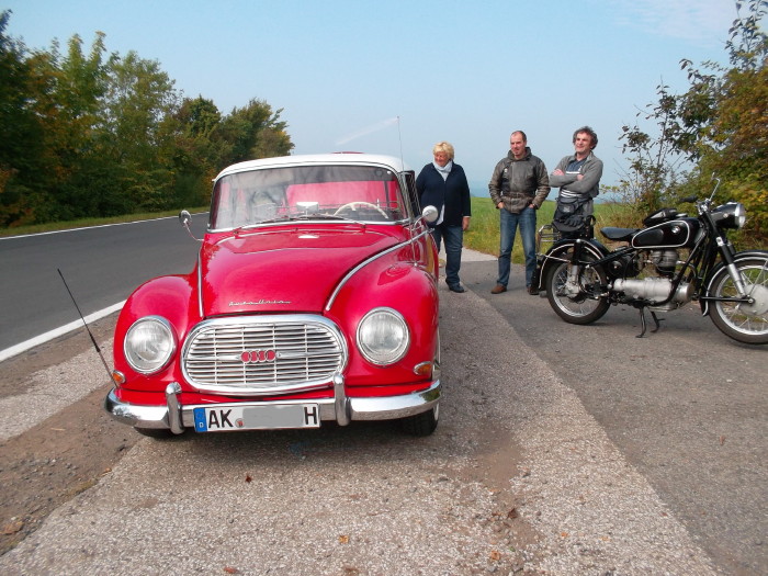 24.09.2017 Eigentlich wollte Willi die Tour ja organisieren und durchführen. Drei Tage vor dem Start wurde er allerdings krank. Wir beide überlegten dann, die Tour zu verschieben oder ich springe für Willi ein. Da mir Willi mit seiner BMW R26 auf die Sprünge half – ich selbst habe ja nur Moped-Oldtimer und mit meinem Youngtimer fahre ich immer viel zu schnell - sprang ich ein.