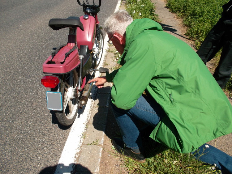 Kalk ist bekanntlich ein wasserlösliches Gestein. Als solches beschert es uns bei Mecherlich Dreimühlen die „Kakus-Höhlen“, die erwiesenermaßen in der letzten Eiszeit Tieren und dem urzeitlichen Menschen schon Herberge bot. Dem Kalkgestein ist es ebenfalls zu verdanken, dass die meisten etwas höher gelegenen Täler sogenannte Trockentäler sind, die keinen Fluss bzw. Bach führen. Lediglich die Tief gelegenen Täten führen auf älterem, kalfreiem Gestein Bäche, von denen der Veybach im Veytal der bekannteste ist und Teil der Ortsnamen Satzvey, Katzvey und Eiserfey wurde. Die Wasserlöslichkeit des Kalks sorgt auch dafür, dass sich rund um Mechernich, etwa ganz anders als im Ahrtal, wo nicht wasserlösliche Grauwacken das Grundgestein bildet, kaum schroffe Landschaftsformen zu finden sind. Rund um Mechernich sind die Formen rundlich und weich. Für den Reiz der Landschaft sorgt im Weiteren die relativ dünne Besiedlung der Landschaft um Mechernich kommt die relativ dünne Besiedlung des Gebietes. Zwischen den einzelnen Dörfern liegen in der Regel mehrere Kilometer Ackerland. Der relativ wenige Waldanteil ist lediglich in den Steillagen zu finden, die für den Ackerbau nicht geeignet sind. So bietet die die Landschaft um Mechernich an den an höher gelegenen Stellen immer wieder hervorragende Fernsichten sowohl in Richtung Eifel als auch bis in die Niederrheinische Bucht, die die durchweg schön anzuschauende nächstgelegenen Täler, Hügeln und Berge mit ihrem satten Sommergrün und den in diesem Jahr schon frühreifen Getreidefeldern in geradezu wunderbarer Weise einrahmen. Immer wieder fahren wir langsam oder halten auch an, um die an diesem Tag dieses Fest für unsere Augen aufzunehmen. Unser Weg führt von Buschhoven über Oberdrees, Flamersheim, Kirchheim, Arloff nach Wachendorf, dem Ersten Ortsteil von Mechernich. Hier ist die Landschaft noch mehr flache Bördenlandschaft als Eifelberge. Weiter geht es nach Mecherlich-Lessenich und dort bergab an der Burg Zievel nach Satzvey ind Veytal. Dem folgen wir flussaufwärts und betrachten kurz vor Katzvey im Vorbeifahen, Anhalten ist hier nicht möglich, die sogenannten Katzensteine, sogenannter Bundsandstein bzw. roter Sandstein. Weiter geht es bis Mechernich, wo Arpad zunächst das Öl-Benzin-Gemisch mit dem Nachtanken von zwei Litern Benzin so weit verdünnt, dass die Kreidler für den Rest des Weges keine Rauchfahnen mehr produziert. Anschließend geht es bergan nach Bergheim, wo wir nach rechts weiter bergan in Richtung Lorbach anhalten. Auf der Höhe machen wir eine kleine Pause, um die vor uns liegende Landschaft zu genießen. Bis Lorbach führt der Weg noch über die Höhe. Danach geht es bergab nach Mechernich-Kallmuth und biegen dort nach rechts in Richtung Scheven ab. Die Landstraße führt hier an teils schon verfallenen Gebäuden des vor Jahrzehnten eingestellten Grubenbetriebes vorbei. Rechts begleitet uns über eine lange Strecke das ehemalige Grubengelände des Bleibergbaus im Westen vom Ortsteil Mechernich. Das vor über vierzig Jahren noch zu Halden aufgeschüttete „taube“ Material des bleierzhaltigen Gesteins aus der Tiefe ist derart unfruchtbar, dass es auch heute noch kaum von einer Vegetationsdecke überzogen ist. Wir sehen Straßennamen, die den Wortteil „Blei“ beinhalten, wir kreuzen den „Bleibach“. Alles das erinnert an das Metallerz, das in den letzten dreihundert Jahren die Wirtschaftskraft der Region westlich von Mechernich mit bestimmte. Inzwischen fürchtet man die bleihaltigen und deshalb ungesunden Stäube aus dem Grubengelände und man ist froh, dass die ehemalige Tagebaugrube südwestlich von Mechernich-Roggendorf mit Müll verfüllt bzw. abgedeckt wird. In Scheven haben wir das Stadtgebiet von Mechernich verlassen. Scheven gehört schon zur Gemeinde Kall. Auch der nächste Ort Wallenthal gehört noch zu Kall. Die Gemeinde Kall ragt im Westen mit den beiden Orten wie eine Zunge in das Stadtgebiet von Mechernich hinein. Etwa einen halben Kilometer weiter erreichen wir wieder das Stadtgebiet von Mechernich und den Ortsteil Voißel. Wir fahren weiter nordwärts über Bleibuir, Hergarten bis nach Vlatten. Alle diese Dörfer, zeigen einerseits alten Fachwerkhausbau aus der Zeit von vor 1850 in bemerkenswert hohem Maße jedoch stattlichen Bauernhäuser aus dem Felsmaterial, das hier quasi vor der Haustüre zum Hausbau gebrochen wurde. Im historischen Ortskern von Kommern machen wir Mittagsrast. Anschließend durchfahren wir nochmals Mechernich in südöstliocher Richtung um bei Breitenbenden dem oberen Veybachtal zu folgen. Die Römer hatten hier viele Spuren hinterlassen. Im Zentrum stand dabei die antike römische Wasserleitung nach Köln. Die ersten Quellfassungen hatte die Leitung weiter im Süden bei Nettersheim. Von dort gelangte sie ins Veybachtal und musste als reine Gefälleleitung bei Vussem ein kleines Nebental mit Hilfe eines Aquäduktes überqueren. Nur einige wenige Kilometer weiter findet sich bei Kallmuth die letzte Quellfassung, mit der die Wasserleitung nach Köln genährt wird. Für die Römer war Trinkwasser dann gut, wenn es viel Kalk enthielt. In Eiserfey verlassen wir das Veytal und fahren über Harzheim, Holzheim, Weiler am Berg und Eschweiler schließlich wieder ostwärts. Die Fernblicke auf dieser Wegstrecken sind wunderbar. Über Kirchheim, Flamersheim. Palmersheim gelangen wir nach Odendorf, wo wir uns noch eine knappe Stunde Zeit nehmen für Kaffee, Kuchen und gute Unterhaltung. Um 15:30 Uhr brechen wir zu unserer letzten Wegstrecke an diesem Tag auf. |